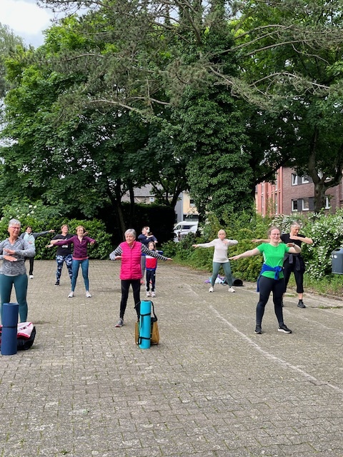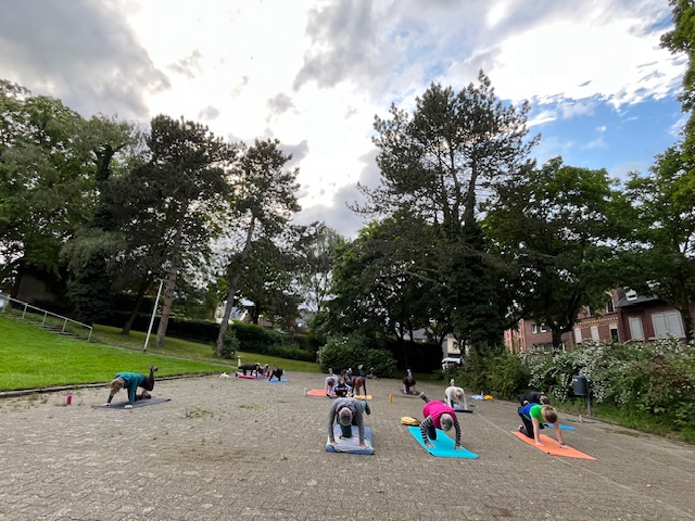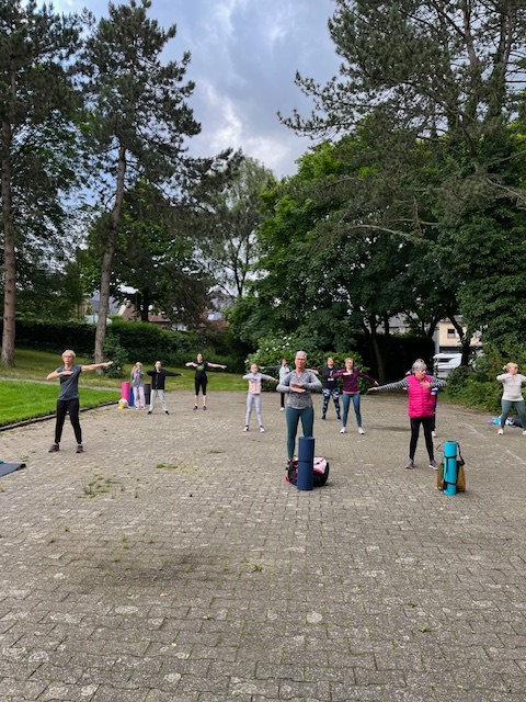 Unser Fit Mix Kurs konnte dank des wohlwollenden Wettergottes mit 5 Teilnehmern trocken stattfinden. Yoga im Park war ein besonderes Erlebnis, das unter blauem Himmel und Vogelgezwitscher 6 Teilnehmer entspannt ins Wochenende führte.
